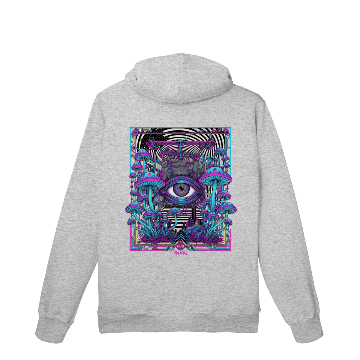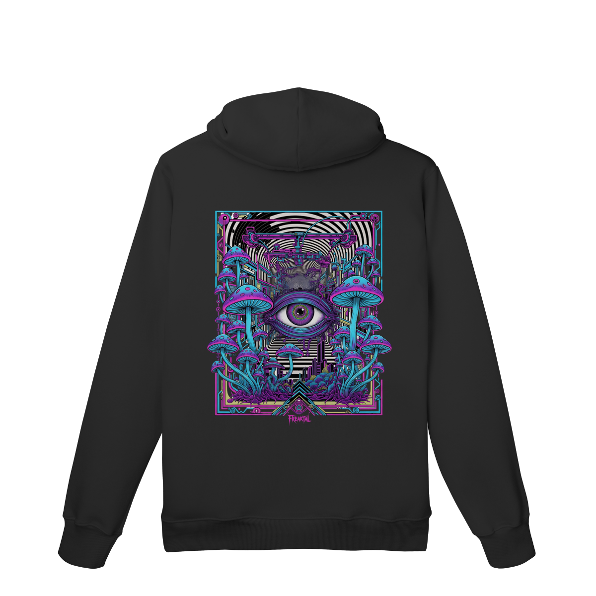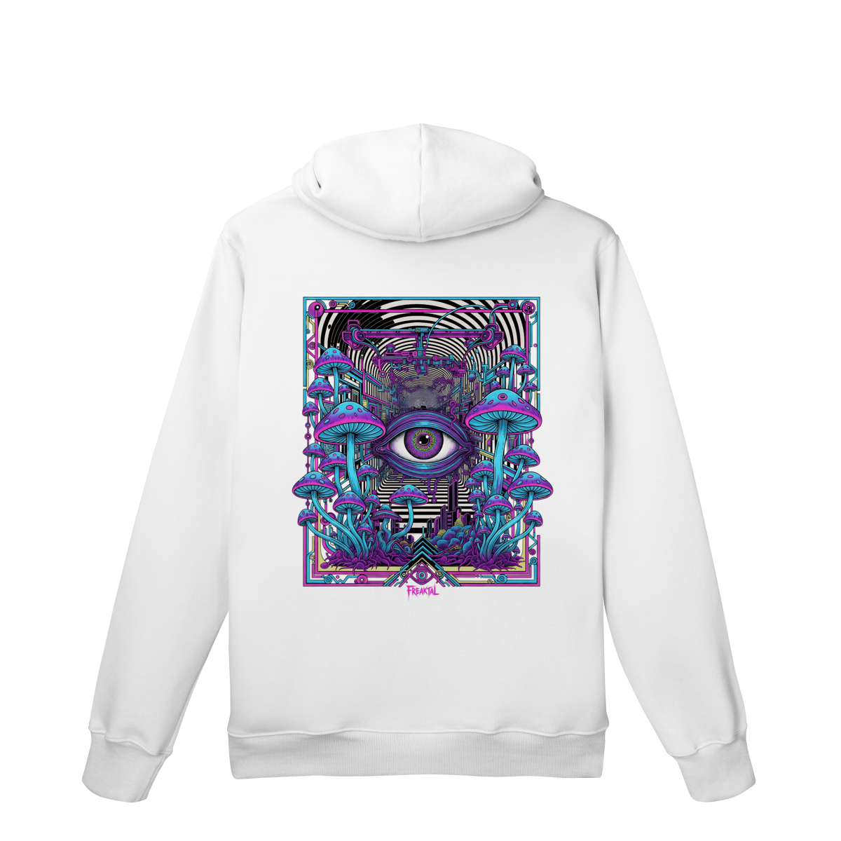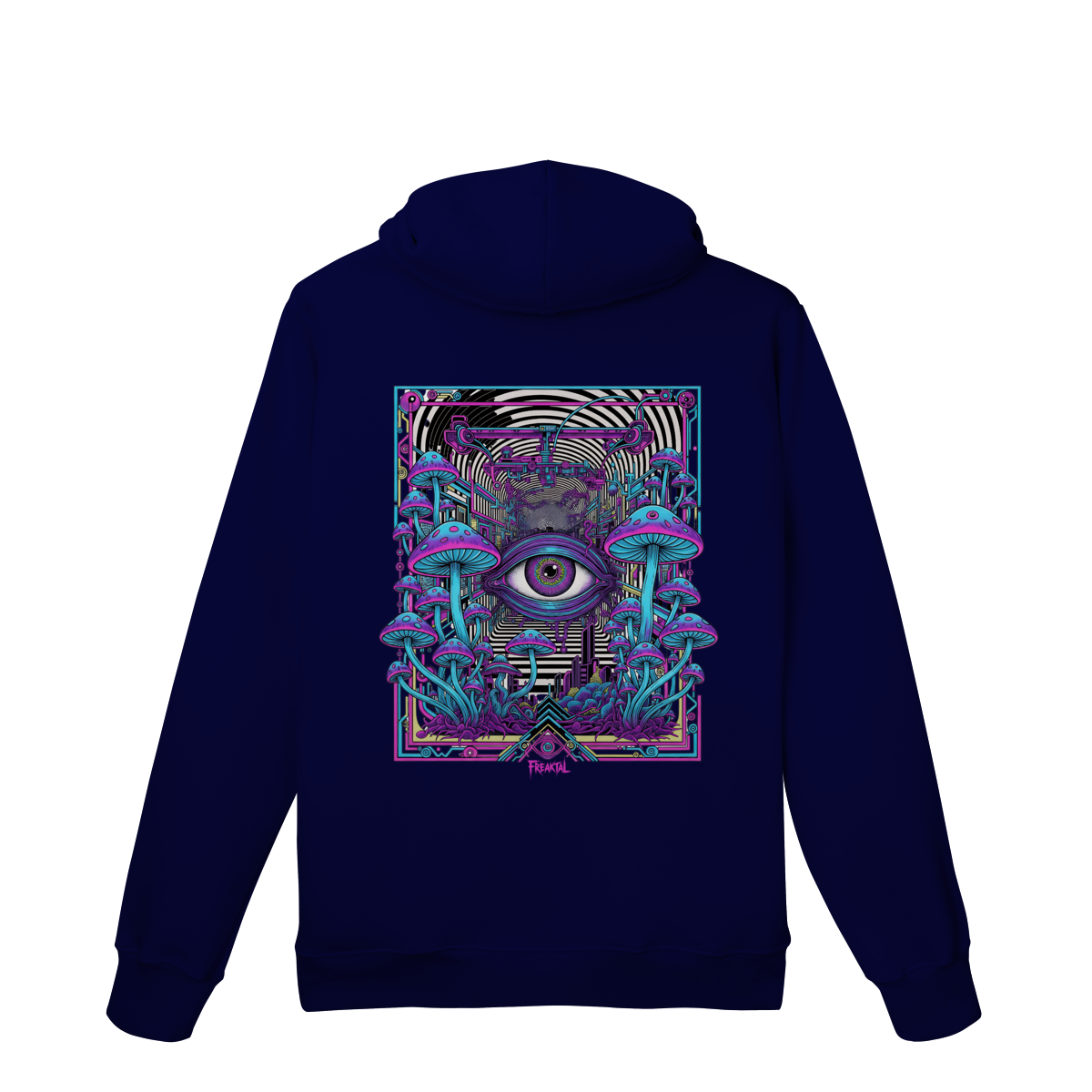 A estampa Psychoeye é o seu portal pessoal para o mindscape — uma explosão de cores e formas que desintegra a realidade. No centro, o Olho da Percepção observa o túnel dimensional, enquanto os cogumelos psicodélicos atuam como guias vibracionais.