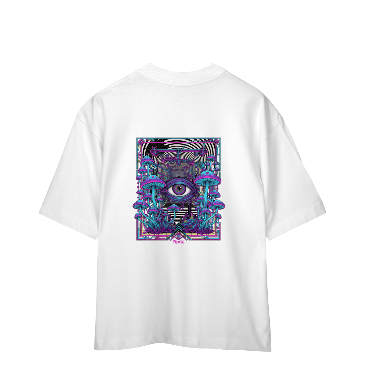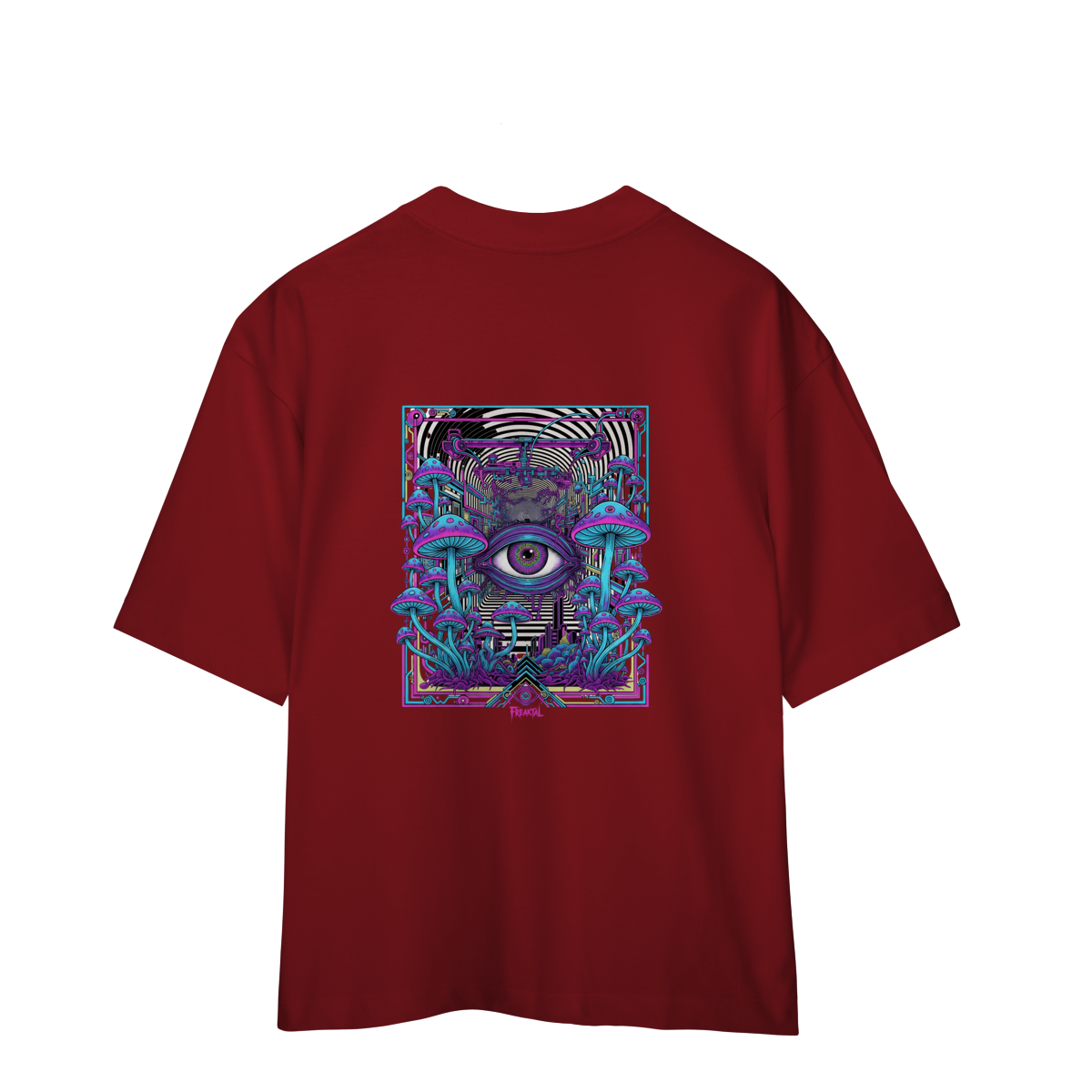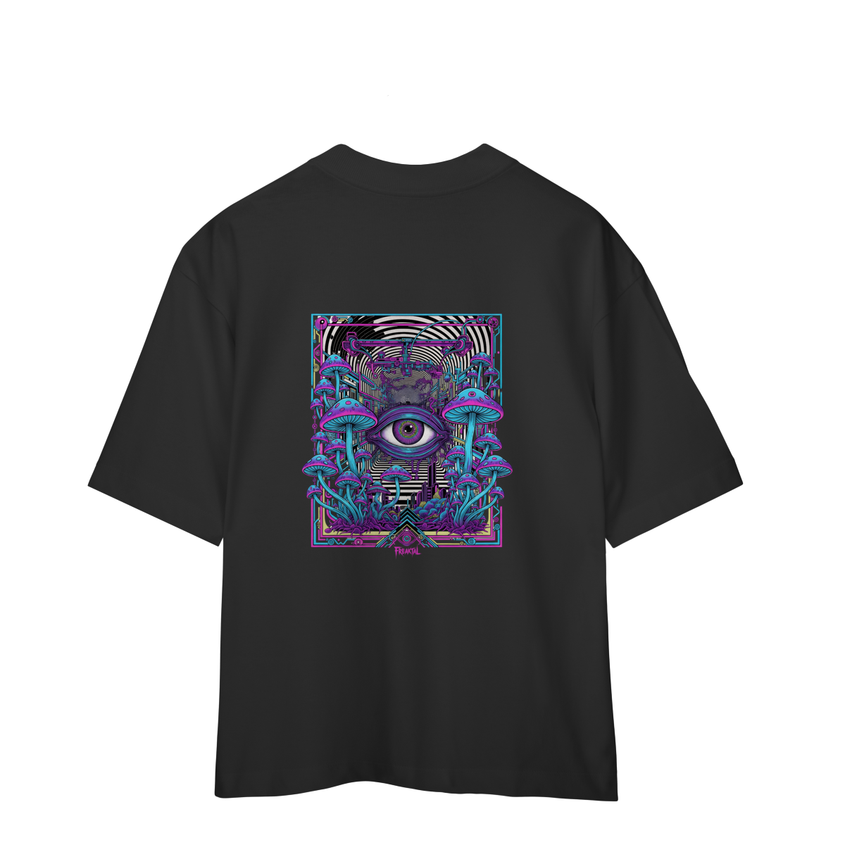 A estampa Psychoeye é o seu portal pessoal para o mindscape — uma explosão de cores e formas que desintegra a realidade. No centro, o Olho da Percepção observa o túnel dimensional, enquanto os cogumelos psicodélicos atuam como guias vibracionais.