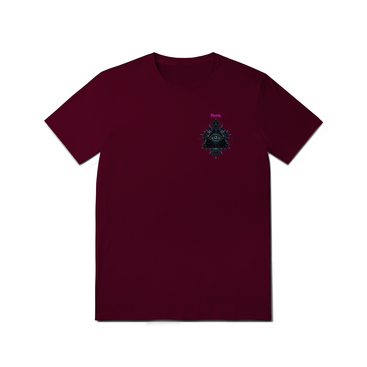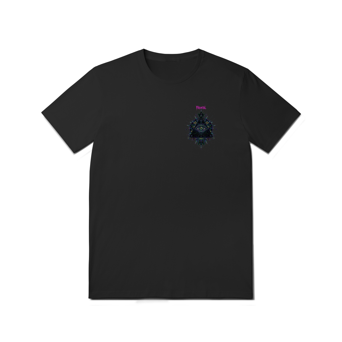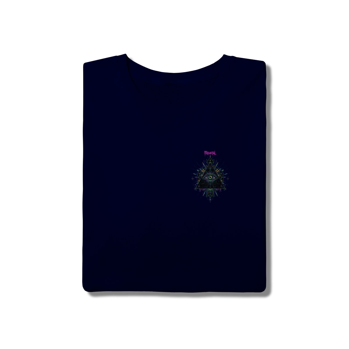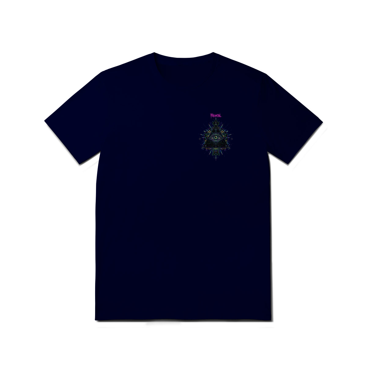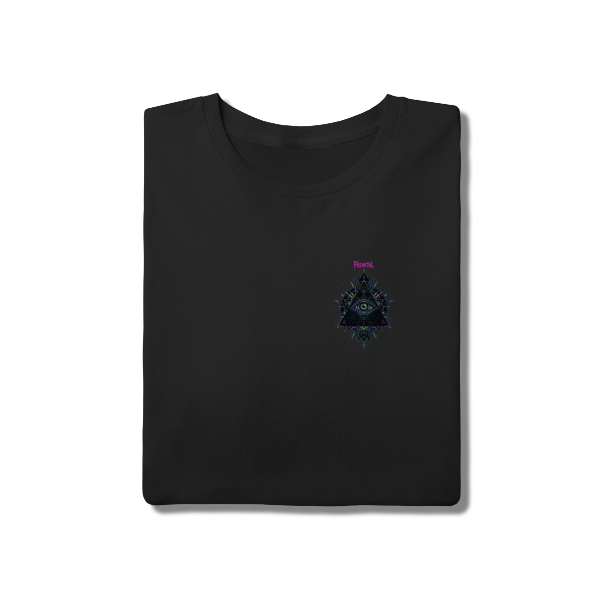A estampa Omnivision é um mergulho no universo do conhecimento expandido. Com o Terceiro Olho no centro de uma pirâmide geométrica high-tech, ela representa a Visão Total que desvenda os códigos do som e da consciência na pista.